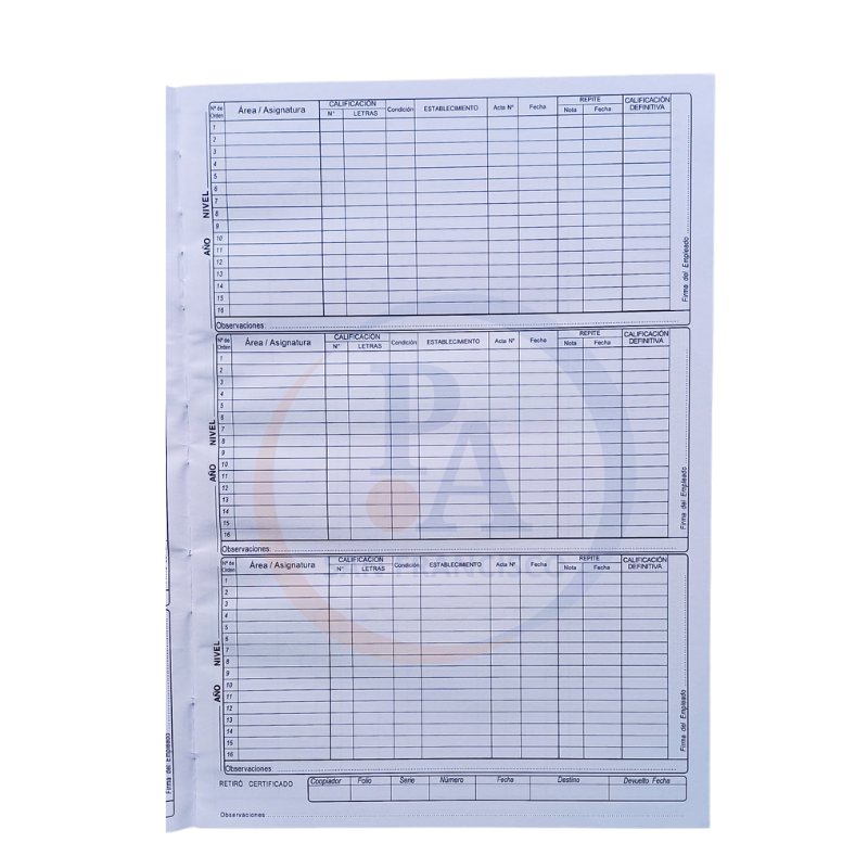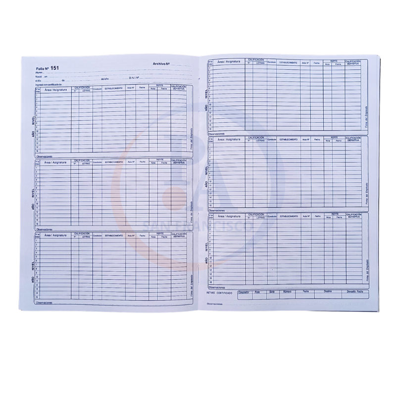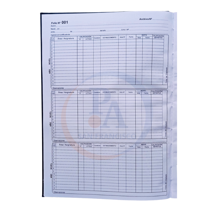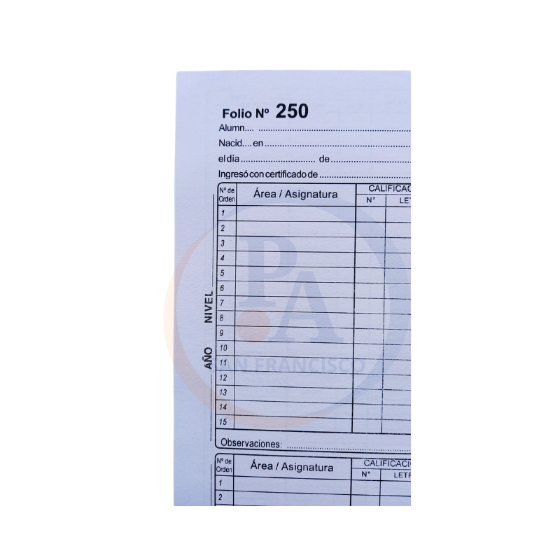 Libro Tapa dura, 22 x 32 cm. 250 hojas – 250 Folios (espacio para 250 estudiantes)